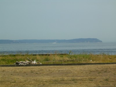 While visiting friends on Apple Tree Point on one of those hot summer days, we took this photo looking across the sound to Whidbey Island. Since we live in such a dynamic area it is important to get out and enjoy our beaches and water recreation. This particular part of Puget Sound offers a fantastic view of the shipping lanes which includes, at about 5 pm daily, the cruise ships passing by on their way to Alaska. What with all the clamming, drift wood and shell gathering, fishing, walking in the sand, and wading in the water – well, what a wonderful summer we have had this year in Puget Sound.